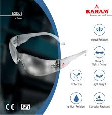 Safety glasses should be made of polycarbonate. They need to have a lens that is 3mm thick, scratch-resistant, and fog-free with side shields. The lenses of safety glasses must be resistant to high impact, chemicals, fog-free, sparks and dust. The lens should also protect against UV radiation.
